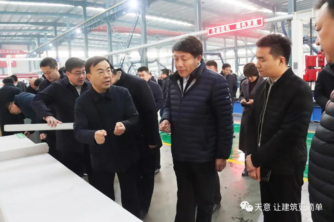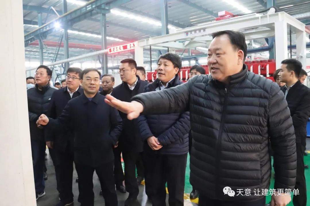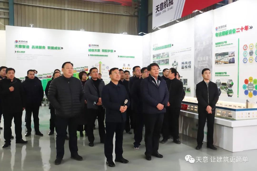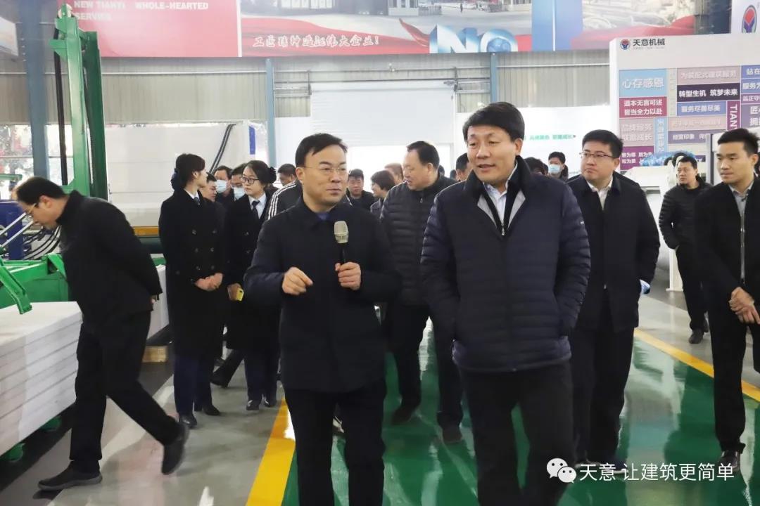 12月18日上午,鄒城市委常委、副市長欒濤一行蒞臨天意考察全市新舊動能轉換現場觀摩項目——裝配式建筑自動化PC生產線項目。兗州區委常委、區政府副區長、黨組副書記屈耀武,天意機械董事長劉洪彬陪同考察。