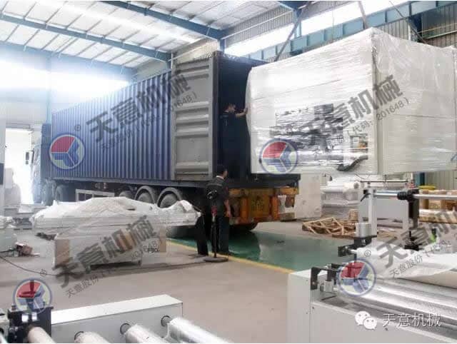 為加快臺灣綠色建筑建材市場快速發展,9月20日,天意機械為臺灣客戶定制的一套保溫裝飾一體化板生產線成功裝車發往臺灣。
