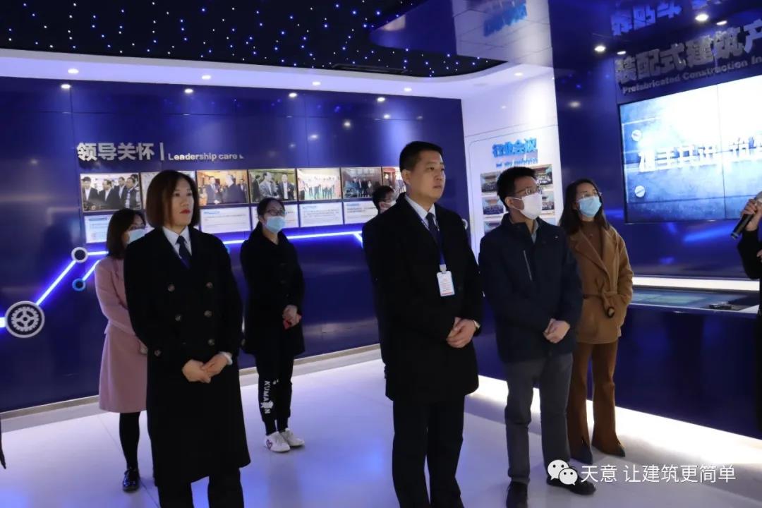 調研組先后深入到天意機械的省級研發中心、科技體驗館、BIM中心(中德合資)等處實地了解企業情況。詳細了解了天意機械與德國ISOCOM公司合資成立TBT公司及收購的德國具有36年歷史的裝配式建筑裝備技術企業—BCDS公司運營情況。