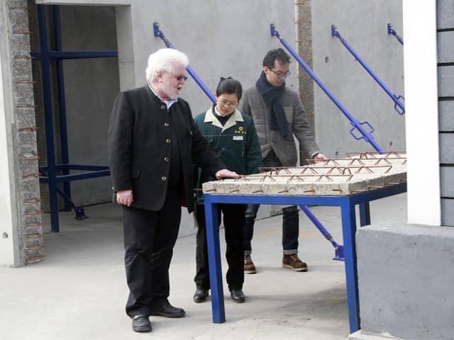 德國外賓Dipl.lng. Bernhard Heid和Wolfang Foerster參觀了天意機械的6A智能辦公大樓、省級研究中心、體驗館、 智能會議中心、國家住宅產業化基地樣板別墅、設備生產車間,并對德國外賓詳細講解了墻板設備的技術性能與行業現狀,同時還參觀考察了公司鋁型材加工基地,鋼結構加工基地,德國外賓對天意機械的行業發展規劃和生產加工制造工藝給于了高度的評價 。