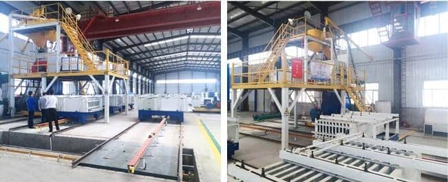1、復合墻板生產線的主要生產設備包括:配料系統、攪拌系統、發泡系統、數控配電系統、墻板成型系統、料漿泵送系統、EPS預發系統、液壓循環系統、整體出板系統。