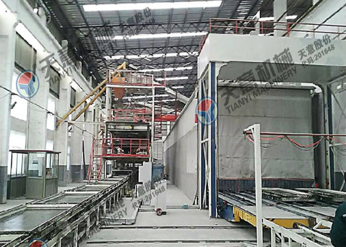 多功能平模墻板生產線流水線生產;成型模具為鋁合金,四面子母槽,外形規矩;產品成型后直接輸送到養護窯養護;產品規格多樣化;自動化程度高;產量高,年產能為30萬平方米;省人工;生產的墻板內墻、外墻、屋面、樓板都可用。
