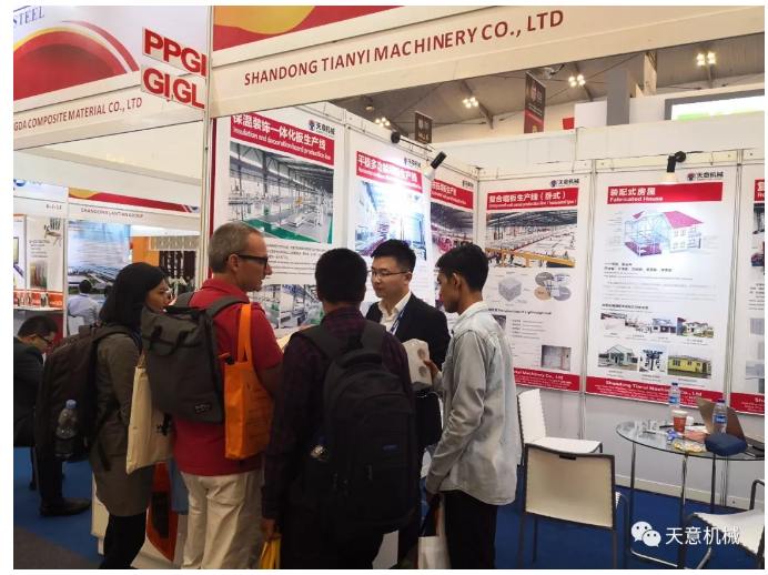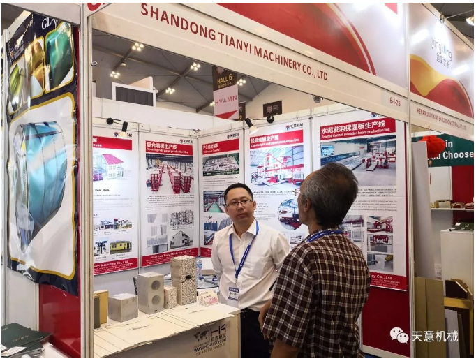 展會期間,天意機械展現了多款適用其本地市場的綠色建筑建材裝備,一經亮相就吸了眾多客商的眼球,前來咨詢了解者絡繹不絕,天意國際銷售經理為客商細心介紹天意裝備的優勢,并得了眾多客商好評。