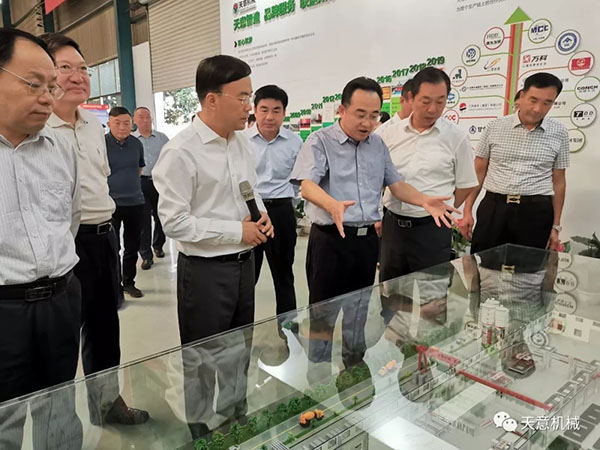 2019年9月23日,濟寧市人大常委副主任陳國華蒞臨天意機械考察指導,區委書記王宏偉,區人大常委會主任于立武,區人大常委會副主任趙廣嶺陪同調研,天意機械董事長劉洪彬陪同各級領導調研考察。