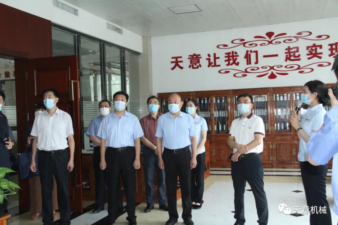 7月14日上午,省檢察院專職委員會委員、一級高級檢察官劉繼祥,法律政策研究室主任、一級調研員李政等領導一行蒞臨天意機械走訪調研,市檢察院副檢察長孔凡學,市檢察院法律政策研究室主任陳玲,區委常委、政法委書記馬剛,區檢察院黨組書記、檢察長安如喜,區檢察院黨組副書記、副檢察長馬洪偉,省政協委員、天意機械董事長劉洪彬陪同調研并座談。